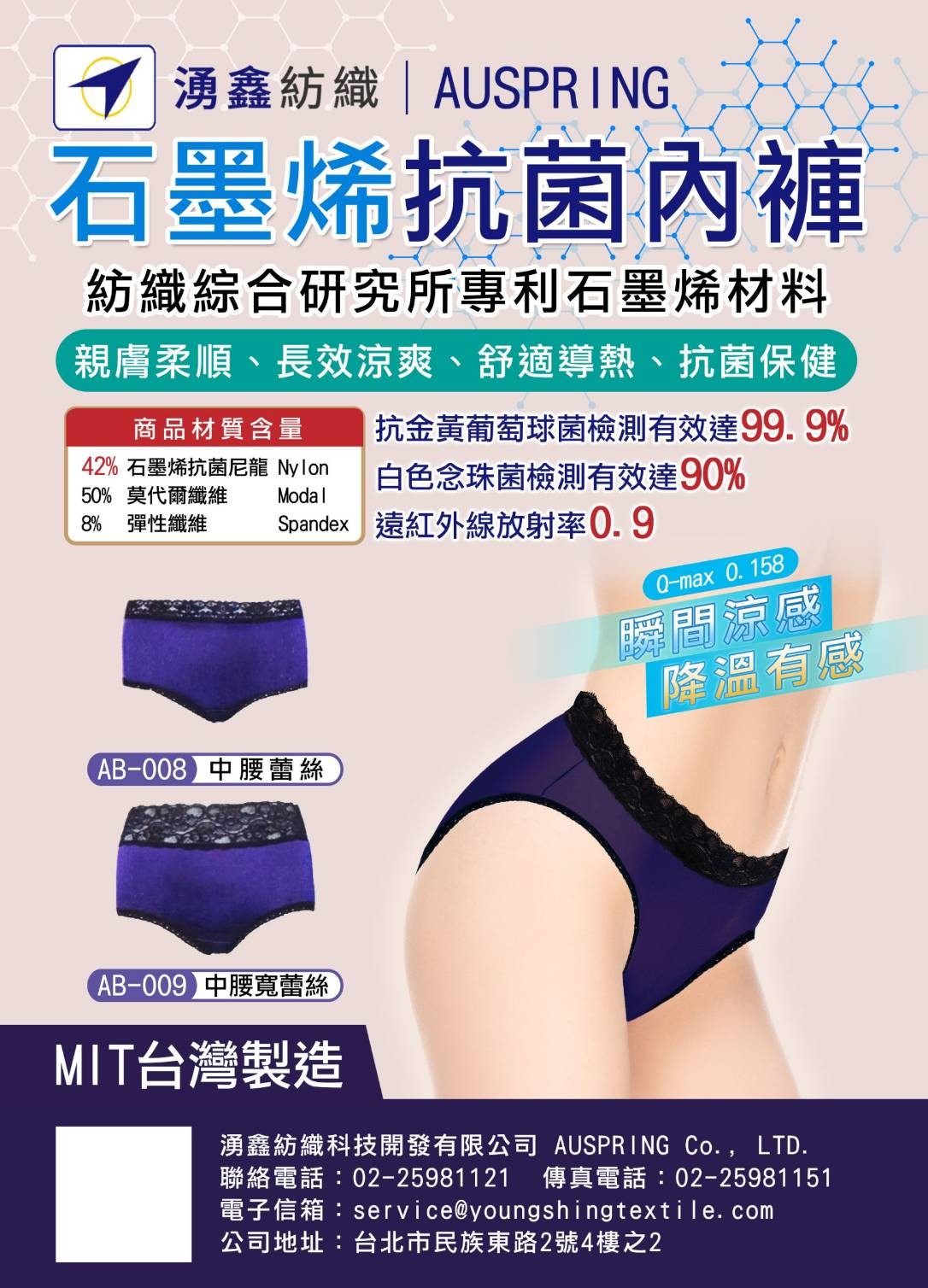 石墨烯抗菌女中腰寬蕾絲內褲