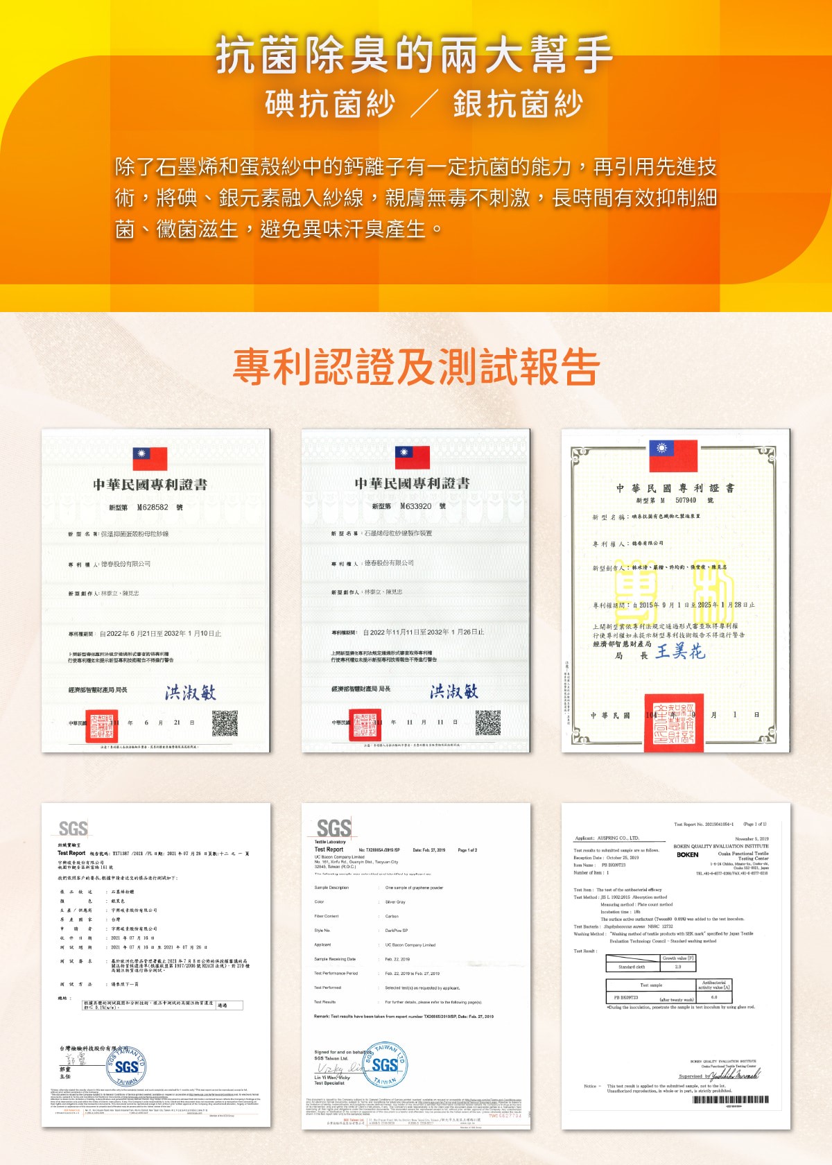 1.使用紡織綜合研究所石墨烯專利無毒材料。