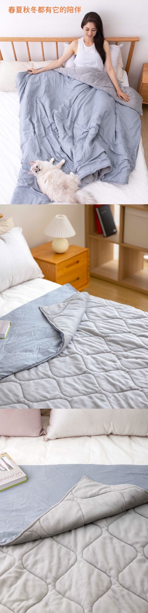 2.雙面設計,冬暖夏涼四季皆宜,輕柔舒適。