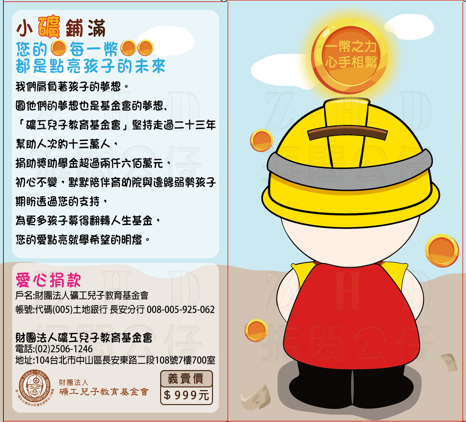 多年來礦工兒子教育基金會以礦工精神為核心,堅毅、踏實 不畏黑暗